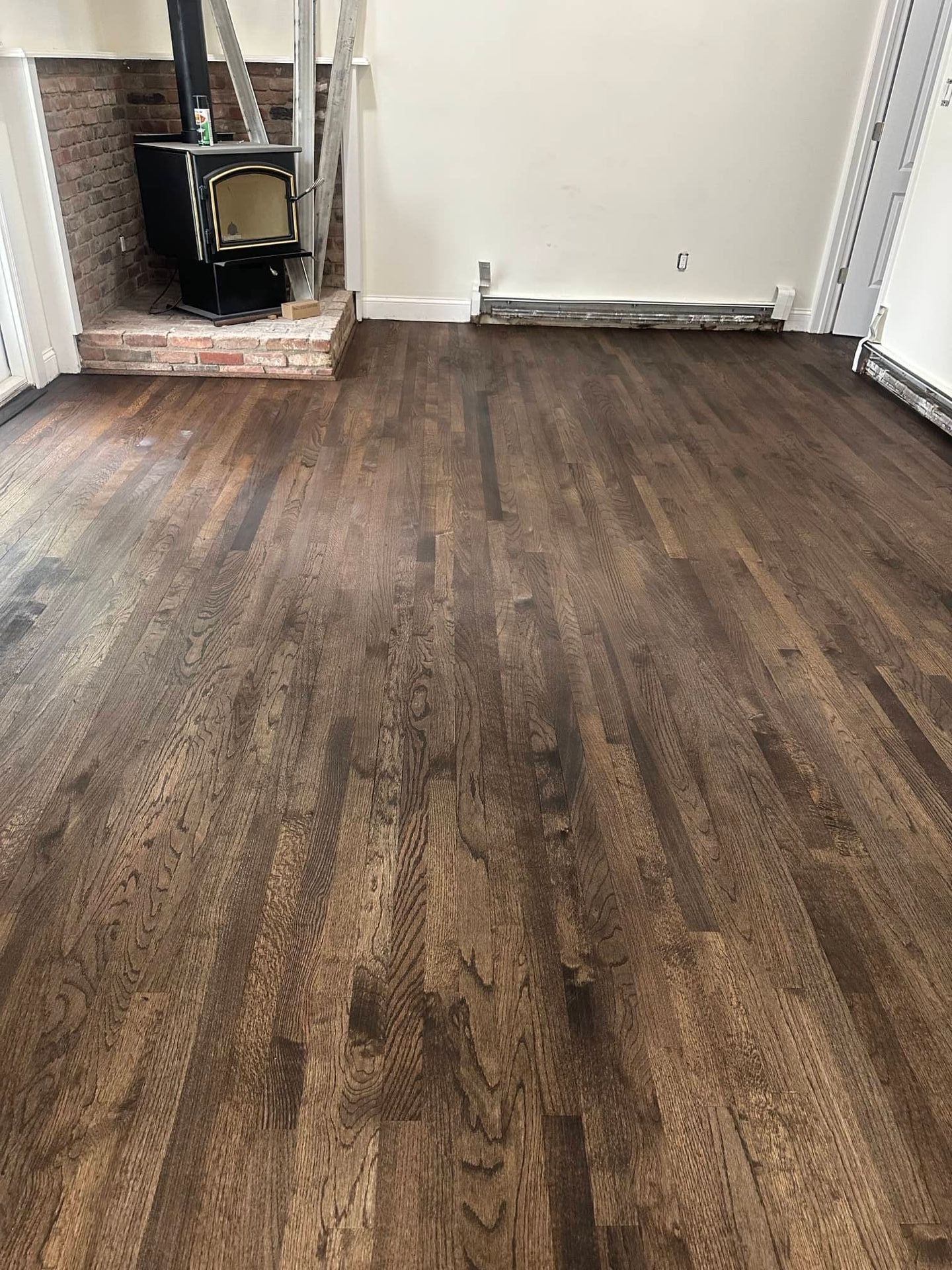 To ensure long-lasting results, we apply two layers of protective coating over the stain. Additionally, our team will provide you with samples to help you choose the perfect stain for your home. Alternatively, we can find a stain that matches your existing wood floors.